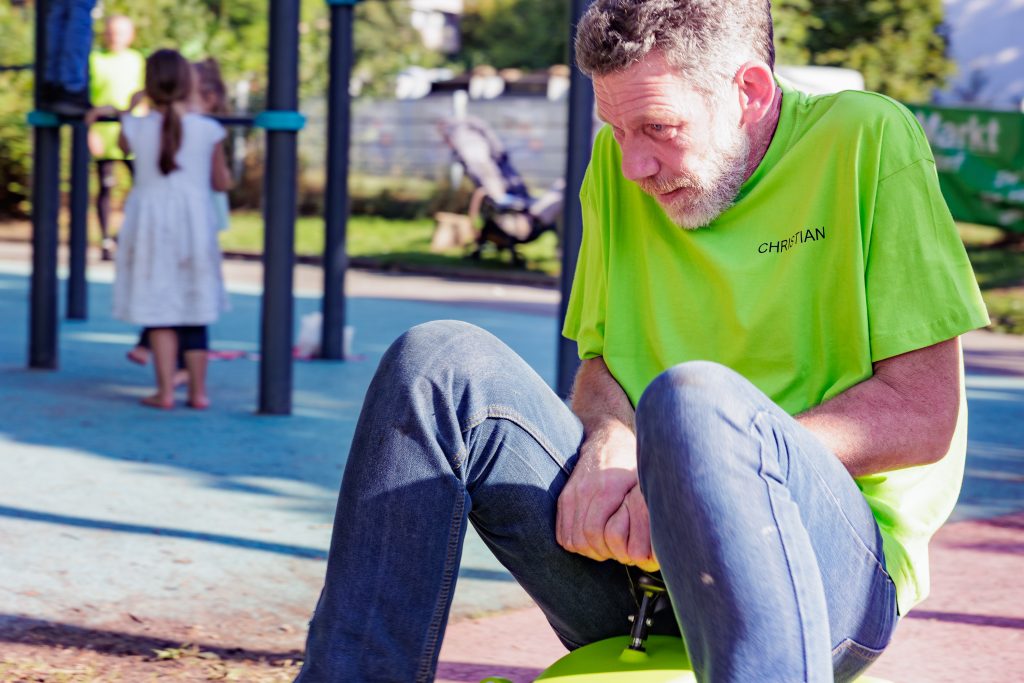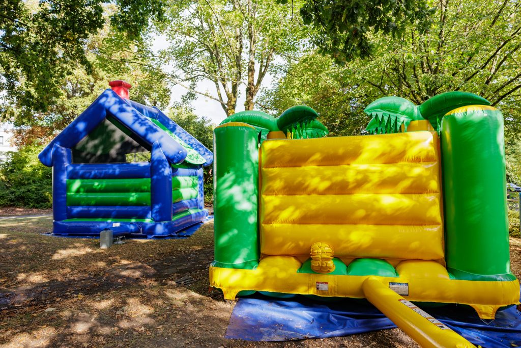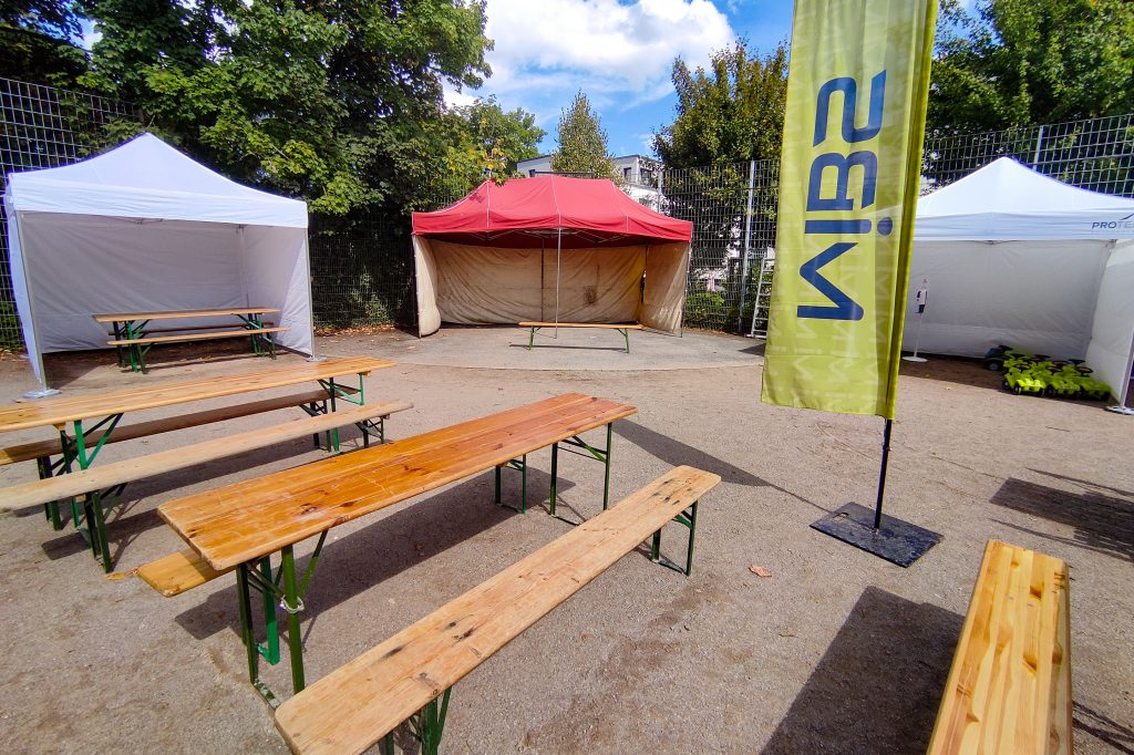 Alles aufgebaut. Um 10 Uhr ging es pünktlich los, Organisator und Spielplatzpate Christian Westerhoff und sein Team eröffneten das Fest nach einer Langen Nacht des Aufbauens und Werkeln.