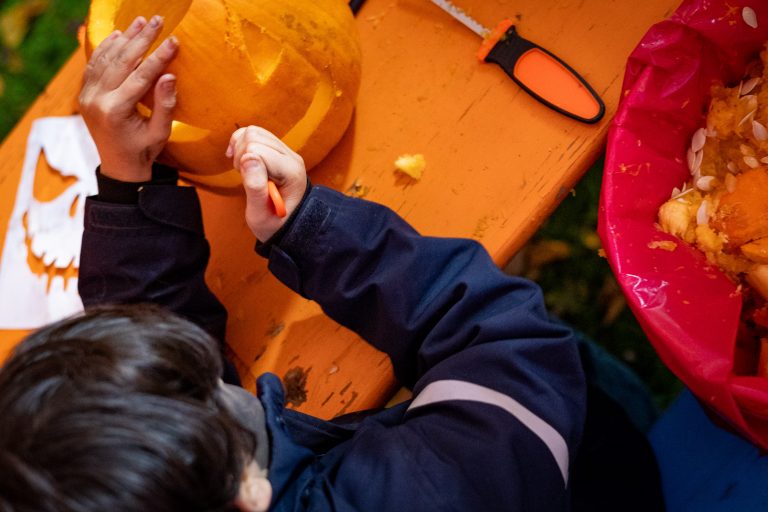 Hier ein paar Eindrücke von unserem Halloween Fest. Bei Einbruch der Dunkelheit wurde es richtig gemütlich. Es gab traditionell leckerer Würstchen und Waffeln – zudem das heißbegehrte bunt gefärbte Halloween-Popcorn, Kürbisschnitzen und natürlich konnte man sich auch richtig gruselig Schminken lassen. Auch das Spielmobil war mit Hüpfburg und allerhand Spielgeräten dabei.